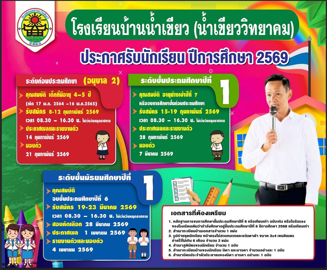 ยินดีต้อนรับเข้าสู่เว็บไซต์โรงเรียนบ้านน้ำเขียว(น้ำเขียววิทยาคม)